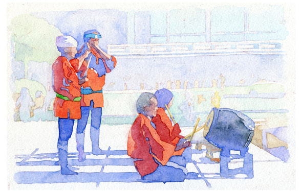 在悠扬的笛声和洪亮的鼓声中,人们在这里渡过了祥和的新年。(东京国立博物馆)