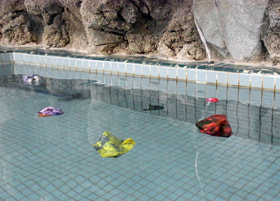 台東区芸術文化支援制度の平成23年度支援対象企画として開催された展覧会「走って流して山ができた」は、梅の湯の脱衣場の壁や床面、格天井を利用して展示されました。