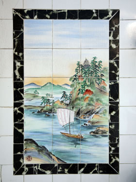 九谷焼のタイル絵(男湯)