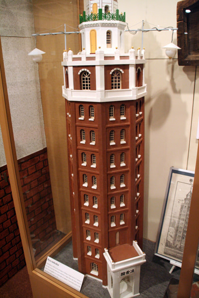 浅草凌云阁(共十二层)在明治23年(1890)年开业,由英国建筑师博尔顿(William Kinnimond Burton,1856-1899,在日本度过了其职业生涯中的大部分时光)设计。建成时的高度据说是220尺(约67米),在明治末期进行的实际测量中被证实其实际高度为173尺(约52米),是当时日本最高的建筑物,同时也是日本最早设置了电梯的建筑,被称为凌云阁。它作为浅草的标志性建筑受到大家的喜爱,后来在大正12年(1923)关东大地震中倒塌。(照片:大正时代)