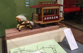 地图中描绘了当时浅草公园的样子,包括凌云阁、全景馆、演出街、游园地、商店街等,地图的下侧可以看到马车和铁道。