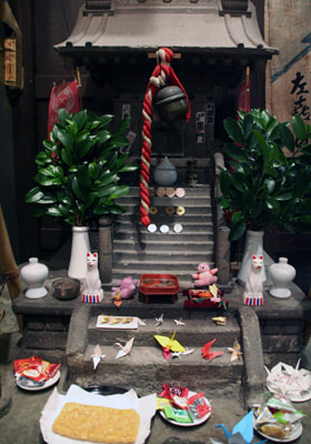A variety of offerings are place at the Inari shrine.