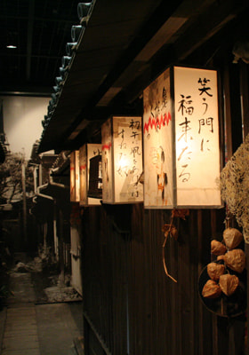 The exhibition on the first floor is based on the exhibition policy that people's lives before the earthquake hit should be passed down to future generations. The meanings and purposes of appliances, which were actually used, are indicated by placing them in living spaces as scene exhibitions. A living space in around 1955 is reproduced at a corner on the second floor, so visitors can compare it with those on the first floor. Also, visitors can not only see the actual appliances at that time but also touch them, so their textures and usabilities can be perceived. Moreover, things which do not have specific forms, such as seasonal or annual event, can be exhibited. The first Horse Day festival is currently exhibited. Since the lanterns with puns written on them are hung under the eaves of the row house and the Inari shrine is placed at the end of the alley, it can be discerned that it is a festival of Inari.[continued in the next page]