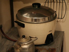 A modern lifestyle at that time is reflected in the big sink, electric rice cooker, toaster and Thermos jug.