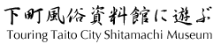 "Bandai," or a custodian's elevated seat in a bathhouse, installed in the museum, was actually used in bathhouse "Kingyo-yu," which was located in Kuramae, Taito City. Visitors can sit on the seat and have a custodian's feeling for a while.