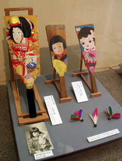 人形は、いつの時代でも大事な遊び相手であり、友達です。それぞれの時代を反映した人形が集まっています。左上は、横にすると目を閉じる「眠り人形」(昭和5年(1930)頃、右上は「キューピー」(昭和20年代)。