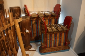 據說是婚禮時使用的太鼓。現在的貝甯在婚禮儀式上使用的太鼓,鼓上面分別雕飾著男性女性器的形狀,有祈求夫婦和合、長壽和子孫興旺等意思的寓意。