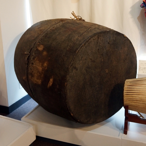 太鼓一般是在鼓身上張一層皮革做鼓膜,但也有例外,比如像這種用金屬做鼓膜的鼓,稱做[銅鼓]。