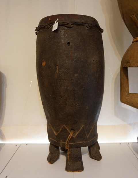 据说是婚礼时使用的太鼓。现在的贝宁在婚礼仪式上使用的太鼓,鼓上面分别雕饰着男性女性器的形状,有祈求夫妇和合、长寿和子孙兴旺等意思的寓意。