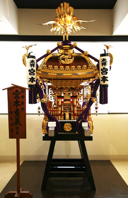Those floats were taller than a height of the castle gate, so the floats had a three-layered structure. It was wisdom. When the floats were entered to the castle, images of, for example, Yoshitsune, the Sun Goddess, or Momotaro was put on top of the floats.