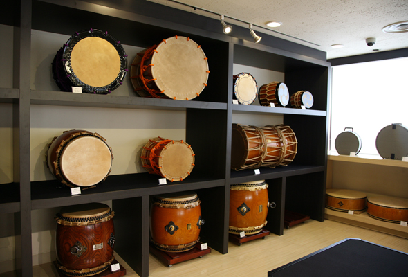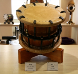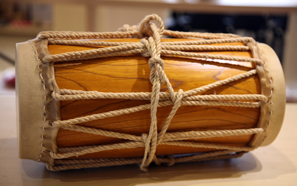 하야시(흥을 돋우기 위한 연주) 등에 사용되는 북. 끈으로 고정된 전통적인 형태 외에도 개조할 수 있게 볼트로 고정된 것도 있습니다.