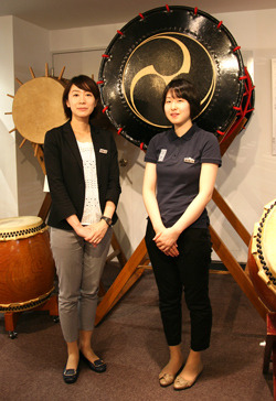 미야모토 우노스케 상점의 기획 홍보실 고오리야마 코즈에 씨(왼쪽)와 다이코칸 큐레이터인 이다 노조미 씨(오른쪽)께 안내를 받았습니다.