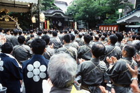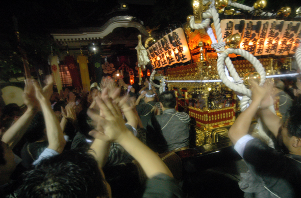 正如人們所說的那樣鳥越祭禮是“夜中祭禮”,早晨大神轎“千貫神輿”從鳥越神社出發,遊行到每個街道會,天稍一擦黑,人們立刻為其掌上亮華麗的燈籠。到了傍晚在它返回鳥越神社的時候,祭禮活動才真正迎來了祭禮的高潮。