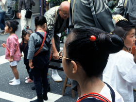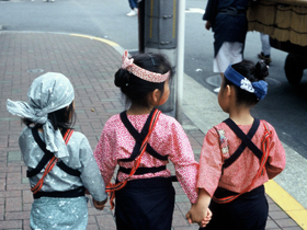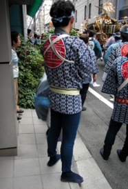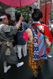 在祭禮活動中,每個街道會的法被(擡神轎時穿的統一服裝)和各式各樣的穿著爭奇鬥豔,更像是個華麗的時裝舞台。在小飾物的使用上和穿著裝扮上都下了很大的功夫。
