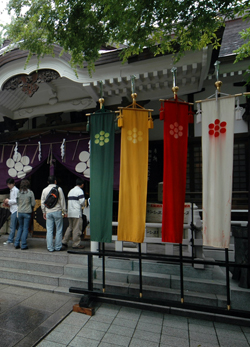 鳥越神社は日本武尊を祭神とし、その創立は今から1300年以上も昔の白雉二年(651年)と伝えられています。もともとこの地は周囲より一段高い丘で、神社はその上に祭られていました。徳川の入府にともない武家屋敷の用地を確保するため丘は取り崩され、更にその後の埋め立て工事などにより平地となり現在の姿となりました。(台東区鳥越2-4-1)