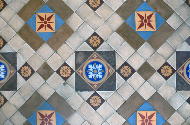 It turned out recently that this four-leaf pattern floor tiles are inlaid Victorian tiles, produced by Mintons Ltd and designed by Augustus Welby Northmore Pugin in around 1850. This company's pottery factory (Minton Hollins Factory) is still being used by The Royal Doulton Company.