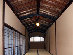 The tokonoma in the Japanese-style house: Most of the wall paintings, including paintings on fusuma sliding doors and panel paintings, are works by Gaho Hashimoto, a great master of Japanese-style painting in the Meiji Period.
