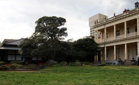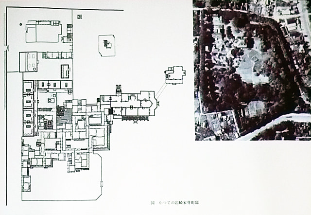 洋館西側から繋いだ壮大な和館がありました。往時の敷地の広大さがしのばれます。(河東義之氏「ジョサイア・コンドルと鹿鳴館時代」講演会より)