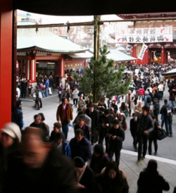 就金龙山浅草寺而言,自公元645年(大化元年)胜海上人被托梦告知后,将本尊定为秘佛,时至今日本尊从来没有公开过。面向东京湾的浅草地区随着前来参拜者越来越多而逐步发展起来。平安时代初期浅草寺中兴开山(慈觉大师称号)•比睿山第三世天台座主慈觉大师圆仁(794-864)来山,雕刻了御前立本尊(佛教把替身佛像称作御前立,因为浅草寺本尊像是完全不公开的绝对秘佛,所以即便是在特别公开日(也叫开帐和开门)也不能对外公开,是用称作“御前立”的像做替身来公开的。)。镰仓时代开始有将军虔诚的皈依佛门,随之又受到著名武将们的信仰和庇护,规模逐渐扩大。到了江户时代初期,已经成为将军的德川家康(1543-1616)把这里指定为幕府的朝拜地,从而更加提高了这里的威严,浅草寺以及浅草,作为江户文化的中心逐渐繁荣开来,自江户以来一直是东京都内最古老的寺院,浅草观音为人们所信仰,每年约有3000多万信者来寺参拜,已经成为了一个民众信仰的中心地。(下段继续)