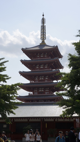 센소지의 오중탑은 덴케이 5년(942)에 다이라노 킨마사의 기진으로 건립되었지만, 그 후 몇 차례에 걸쳐 붕괴, 소실되었습니다. 도쿠가와 삼대 장군 이에미츠에 의해 게이안 원년(1648)에 건립되어 국보로 지정되었던 오중탑도 쇼와 20년(1945)의 전화로 아쉽게도 소실되었습니다. 1973년, 패전과 서원 등을 갖춘 새로운 오중탑원이 재건되었습니다.