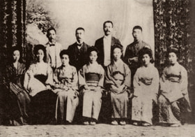 Graduates of Tokyo Music School in the class of 1904 - Tamaki Miura (formerly Shibata) in the front row, far right, teacher Nobu Koda in the middle and Ko Ando (formerly Koda) to the right of Nobu.