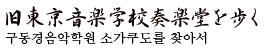 소가쿠도의 명칭에서 유래하는 음악 홀은 길이 16.4 미터, 넓이 26.4 미터, 객석 338석 규모의 작은 홀입니다. 천장은 음향을 고려하여 중앙부가 둥근 형식으로, 막대 모양의 연결 대들보가 받치고 있습니다. 이 작은 홀에서 수많은 연주회가 개최되고 수많은 음악가가 배출됐음을 짐작할 수 있습니다.