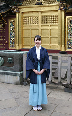 We talked with Maki Saga, a Shinto priest at Ueno Toshogu. (Interview: February 2019)