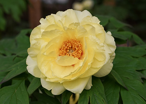 There are American and French varieties. Those varieties are a little bit different from traditional varieties, some of which were improved from Chinese peonies. This yellow variety has a Western-style name, "High Noon." (continued in the right column)