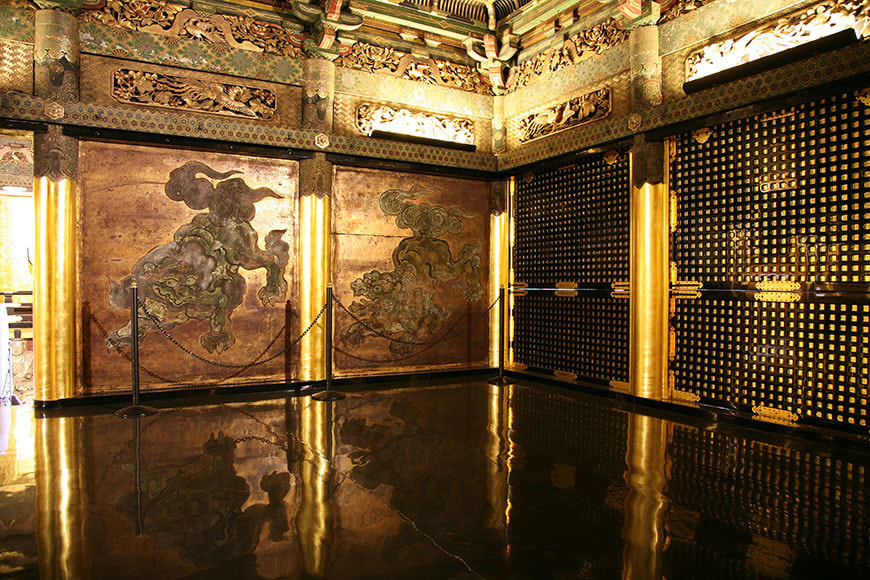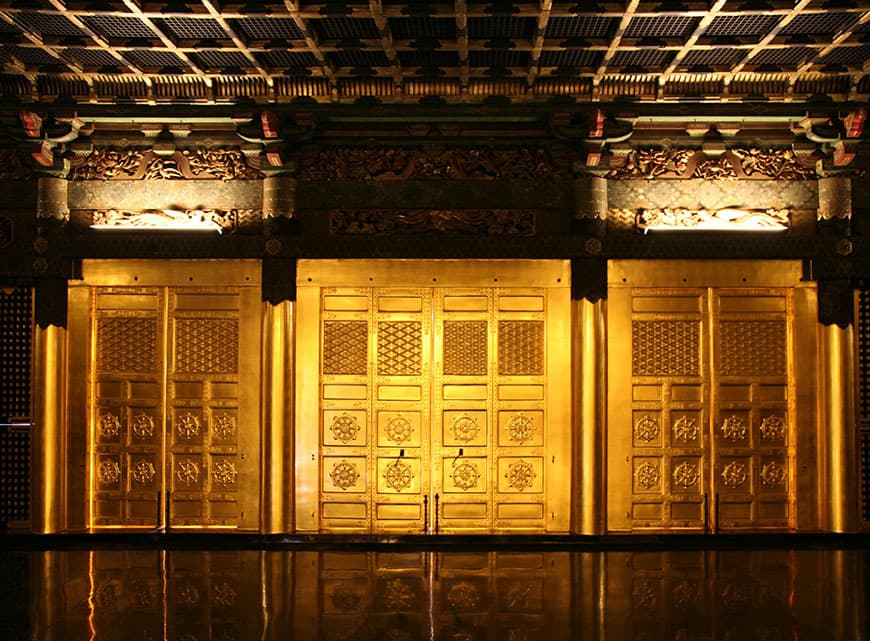 창건 때부터 지금과 마찬가지로 수십 년에 한 번씩 보수가 이루어졌다고 전해지지만, 명확한 기록은 대부분 남아있지 않습니다. 최근의 보수는 헤세이 21년(2009)부터 헤세이 25년(2013)까지 5년간에 걸쳐 이루어졌으며 건립 당시의 금색이 선명하게 되살아났습니다.
