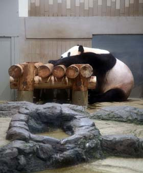 熊貓館裏有室外運動場和室內展示場,周圍還種植著能應急時吃的竹林,盡量接近他們出生地中國四川省的飼養環境。