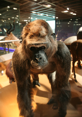 产自喀麦隆的西部低地大猩猩布鲁布鲁,来动物园时是昭和32年(1957),平成9年(1997)去世,推定年龄是44岁,一般认为大猩猩的寿命是40岁左右,所以它是很长寿的。展示在国立科学博物馆地球馆的3层。