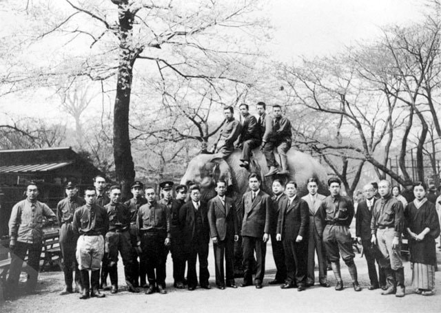 The Second World War from 1939 to 1945 affected not only exchanges of animals but also assembling of staff members. Three animal handlers out of 15 went to the war in 1938, and Zoo Director Tadamichi Koga was drafted into the forces in 1941, so Saburo Fukuda, a technical expert, was appointed acting director. A feed shortage became aggravated, and animal handlers compensated for the lack of feed by mixing branches and leaves of roadside trees and tea dregs with the feed. Iron materials of benches and fences in the zoo were also supplied to the government. In 1943, Tokyo City merged with Tokyo Prefecture to form Tokyo Metropolis, and the Ueno Zoo was ordered to slaughter 27 fierce animals. When the war was over in 1945, the zoo lost elephants, tigers, lions and bears due to the slaughter, and there were air-raid shelters and potato fields in its devastated grounds. Zoo Director Koga, who went to the war, resumed his office, and restoration work gradually began. (continued in the lower column)
