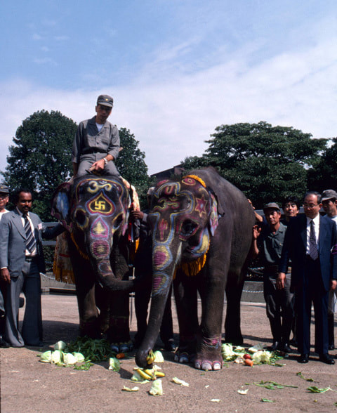 The major task for the zoo was to supplement the number of animals, so exchanges of animals with foreign countries, including the United States, resumed. Lions, pumas, macaws, skunks and other animals were presented by Hogle Zoo in Salt Lake City, Utah, and in return, the Ueno Zoo presented Japanese cranes, Japanese giant salamanders and Japanese monkeys to Hogle Zoo. In 1949, two elephants eagerly awaited by children came to the Ueno Zoo: "Gachako" (Hanakako) from Thailand, and "Indira" from India which was sent in response to a request letter from Japanese children to Prime Minister Nehru. The arrival of Indira became a symbol of peace, and the event was recorded in the postwar history. In 1951, "Jumbo," an Asiatic elephant, was donated by the traveling zoo committee, and Zoo Director Koga attended a conference of the International Union of Directors of Zoological Gardens, held in Amsterdam, in which he was admitted to join the union as a member. As a result the zoo was internationally recognized. After that, animals came to the Ueno Zoo one after another from zoos all over the world, and it became lively. (continued in the lower column)