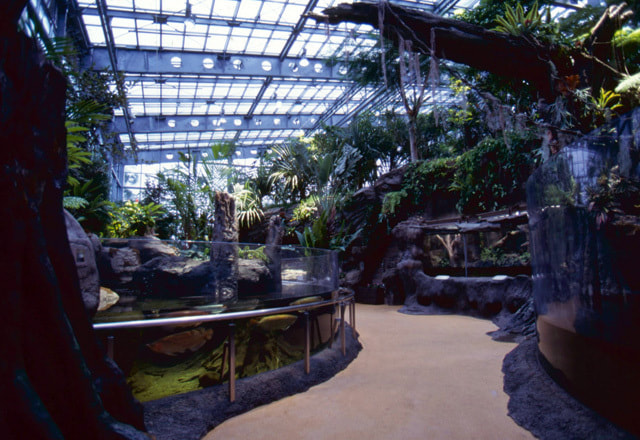 In the herptile house opened in 1999, biotopes of a waterfront area, savanna, desert and forest environments are reproduced at respective sections. In order to have animals sunbathed and keep them warm, those sections are filled with natural light, and plants are cultivated to maintain appropriate views.