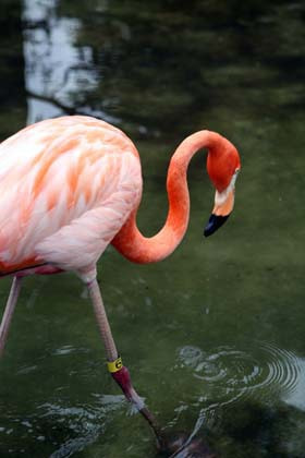 西園のフラミンゴは、自然を再現した池をゆるやかに散策していました。
