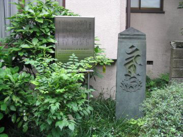 It was erected in 1293 and it is one of the most traditional ones in Taito City. The inscription at the bottom tells us that it was commissioned by a man as an act of warship for the peace of the soul of his late father. The large figure chiseled into the center is a Sanskrit character symbolizing Fudo-Myo-o (Acala).