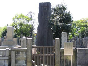 On the literary side, Genichiro organized the Kabuki-za with Ichikawa Danjuro, Kawatake Mokuami, and others. As well as concerning himself with ways of bettering stage play, he wrote the history books, "Bakufu Suibouron," "Bakumatsu Seijika," and others. Even today, he is still highly regarded. On January 4, 1906, passed away at the age of 66. On the front of the tomb, "Fukuchi Genichiro Tomb," on the side, his and his wife, Satoko's, posthumous Buddhist names are engraved.