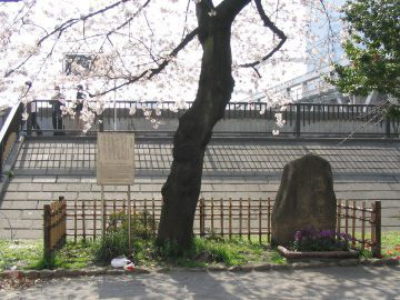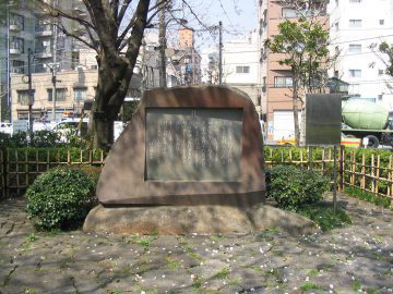 武島羽衣(たけしまはごろも)作詞・滝廉太郎作曲「花」。本碑は、羽衣自筆の歌詞を刻み、昭和31年(1956)11月3日、その教え子たちで結成された「武島羽衣先生歌碑建設会」によって建立された。