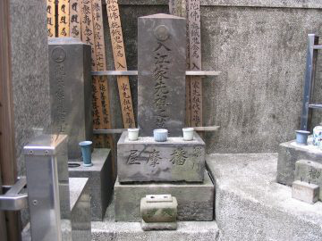 明治22年(1889)10月8日に78歳で深川に没すると、遺骨は正定寺に埋葬され、同時に松崎の浄感寺にも分骨された。正定寺の墓石には、「入江家先祖の墓」と刻まれ、台石には「深川播摩屋」と養家の家号が刻まれている。