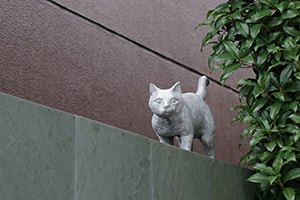 夏目漱石も住んだ事で有名な「猫の家」と呼ばれる家に、離婚後にまず引っ越し、短期間でしたが、弟さんたちと一緒に暮らしていました。「猫の家」は今は猫の像と碑だけがありますが、建物は愛知県の明治村に移築されています。(右段に続く)