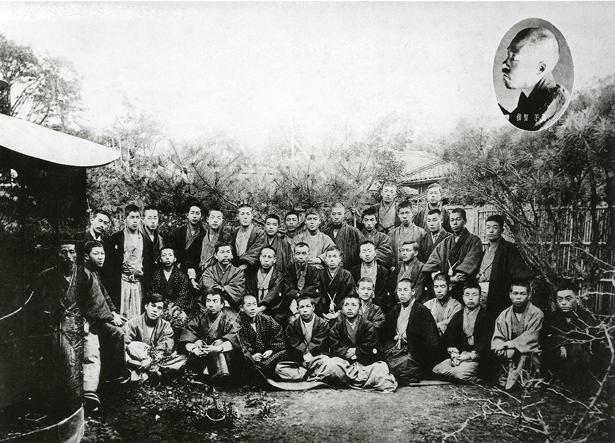 在子规庵客厅的廊子上拍的纪念留影,子规坐在中间一排的中央位置。与谢芜村的才能令子规为之倾倒,为他写了《俳人芜村》《俳谐大要》等作品,确立了参考西洋美术的写生方法的写生主义。杂志《杜鹃》和子规的写生主义感动了和歌诗人、小说家长塚节等人,由于他们的加入,直接促成了短歌杂志《阿罗罗木》的创刊。
