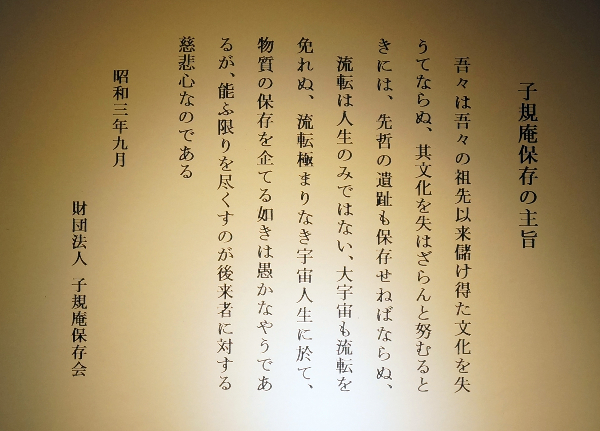 2018 will mark the 90th anniversary of the foundation of the Shikian conservation society foundation. Now, the society is a small organization that consists of volunteers who are not related to the Masaoka family and Shiki's pupils, but we will strive to maintain and preserve Shikian by gaining cooperation from people who visit Shikian.