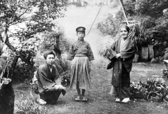 三歳年下の律さんと二人だけでした。子規の没後は、お母さんの八重さんと律さんが、これまで通り 句会や歌会や文章会のお世話をされています。正岡家を遺すために従弟(母の弟、加藤拓川の三男)の忠三郎さんを養子にされましたが、関西にお住まいだったので、ご一緒ではなく、母娘でずっと子規庵でお暮しでした。共立女子職業学校を退かれたのは、大正12年(1923)53歳の頃で、それからは知人の娘さんたちに裁縫や手芸を教えていたそうです。八重さんが昭和2年(1927)に亡くなられた後、共立の教え子の方々がよく遊びに来られ、庭での写真も残っています。曽野綾子さんのお母さんも教え子だったとのことです。忠三郎さんのお子さんに会いに行かれたり、お庭で鶏を飼ったり、歌舞伎を観にも行かれたり、穏やかな晩年を過された律さんは、昭和16年(1941)5月、71歳で亡くなられました。