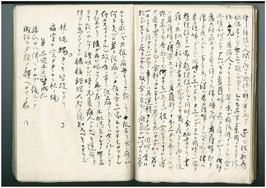 律さんはテレビドラマ「坂の上の雲」では女優の菅野美穂さんが演じられて有名になりましたが、本当に献身的に子規の看護をされました。ただ兄妹ですから日常の喧嘩もあったのでしょう。『仰臥漫録』という病床日録に、律さんの悪口をずいぶん書いています。でも、同時に、妹が一日でも居なければ自分はほとんど生きて居られないだろうとも言ってます。その喧嘩のあとは必ず甘いものを家族三人で食べているのが面白いですね。子規が亡くなった後に律さんは32歳で女子職業学校に入学し、卒業後は事務職を経て裁縫科の教員になっています。今の共立女子大の前身の学校で、しっかりした優秀な先生だったそうです。また、叔父さんの息子さんを養子にされて、正岡家を遺されました。