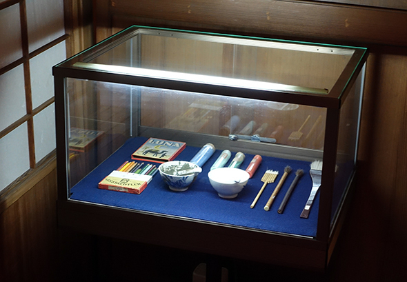 본 기념관의 현관 앞에는 시미즈 육도 육지장석탑(만지 3년(1660))이 놓여있습니다. 교토 히가시야마의 진코지 사찰 부근은 육도의 갈림길이라고 불리며 예부터 저승으로 가는 길이라 일컬어졌습니다. 이 석탑은 육도의 갈림길에 놓여 있었던 것으로 여겨집니다.