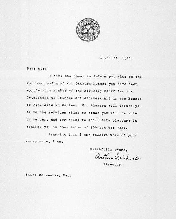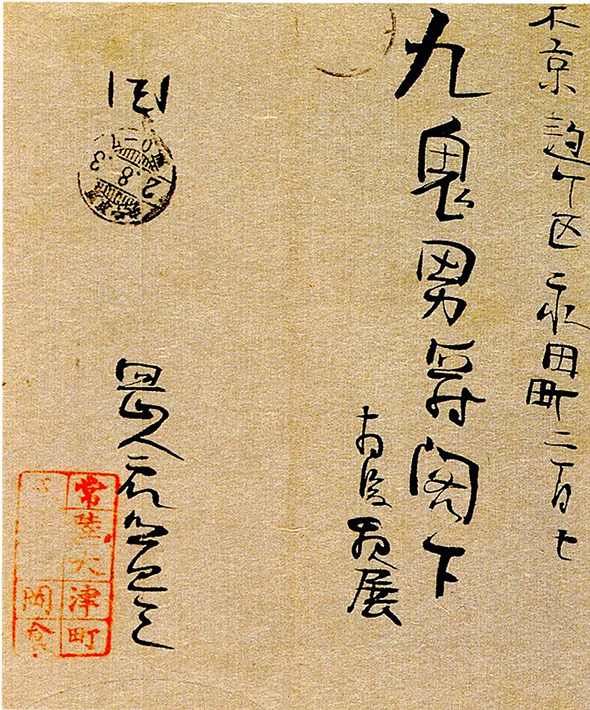 天心寄给九鬼隆一的书信(1913年(大正2)、茨城县天心纪念五浦美术馆收藏)