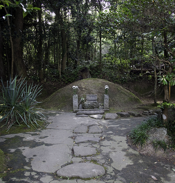 In the vicinity of Tenshin's former residence, there is the site where the house of Shunso Hishida who, along with Tenshin, moved to Izura previously stood. Shunso studied under Gaho Hashimoto at Tokyo Fine Arts School, along with Taikan, developed "Moro-tai," or hazy style, that went beyond conventional expressions with line drawing, and created excellent paintings, such as "Ochiba," or fallen leaves, which utilized the atmospheric perspective. He died young at the age of 36.