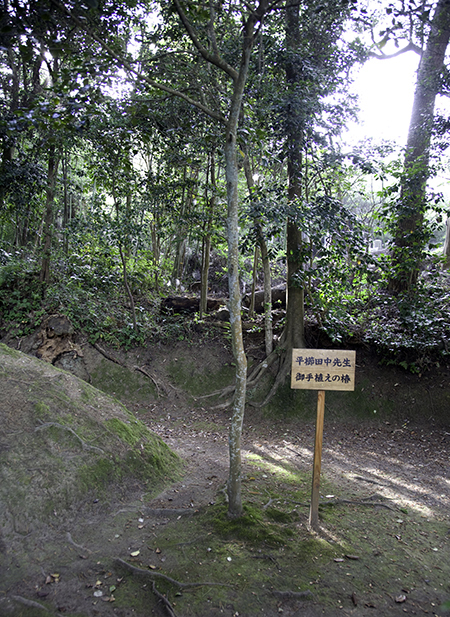 天心の旧宅の近くには、天心に伴い五浦に移り住んだ菱田春草の自宅跡が残されています。東京美術学校において橋本雅邦らに師事し、大観と共に従来の線描による表現から脱した朦朧体への試みや西洋的な空気遠近法を用いた代表作「落葉」等の優れた作品を表した春草は、36歳にして夭逝しました。