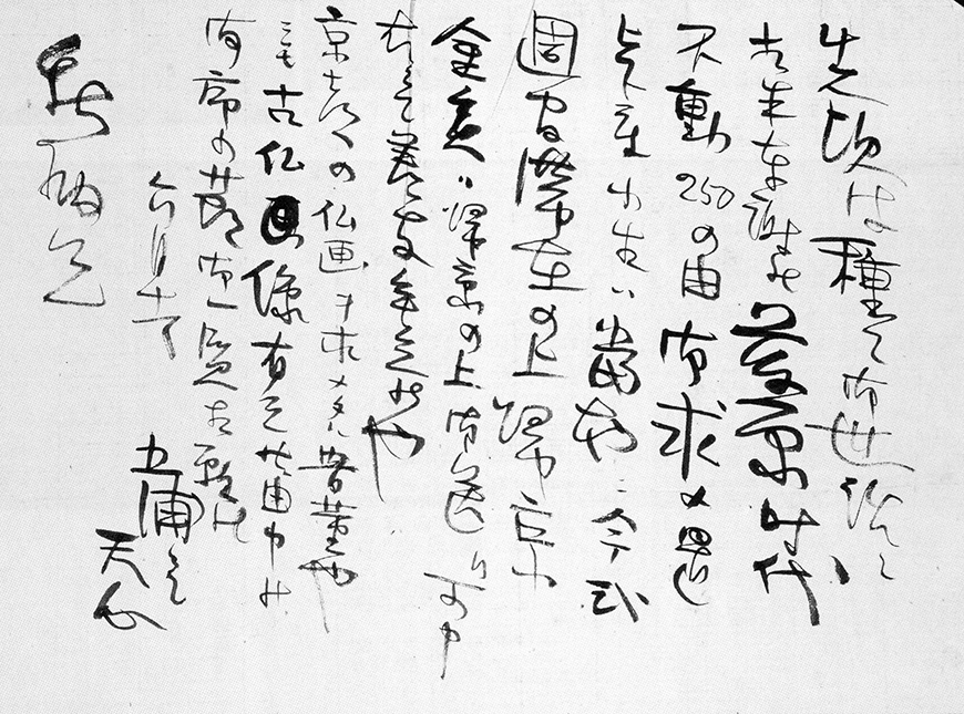 구키 류이치에게 보내는 텐신의 서한(다이쇼 2년(1913), 이바라키현 텐신 기념 이즈라 미술관 소장)