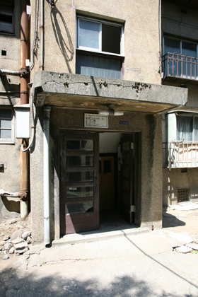 우에노시타 아파트의 젼면도로에서 본 소방서의 화재 감시 망루